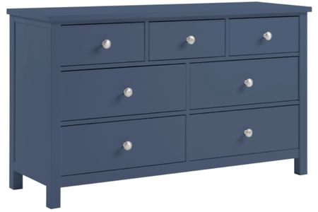 Organize your bedroom in style with this stunning blue dresser, a perfect blend of contemporary design and durable craftsmanship. Crafted from high-quality wood, engineered wood, and UV-finished veneer, this spacious chest of drawers features a striking navy-inspired finish that serves as a bold focal point. With seven deep drawers.Read More