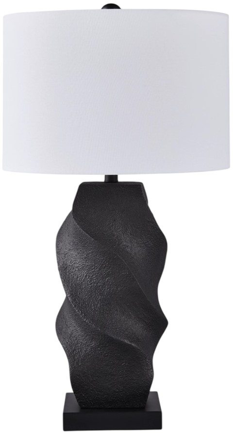 This table lamp puts a chic twist on casual lighting. Its base draws the eye in with a rich sense of movement, while the classic black finish has the versatility to pair with a variety of styles. Place it on a desk or end table for instant functional flair.Read More