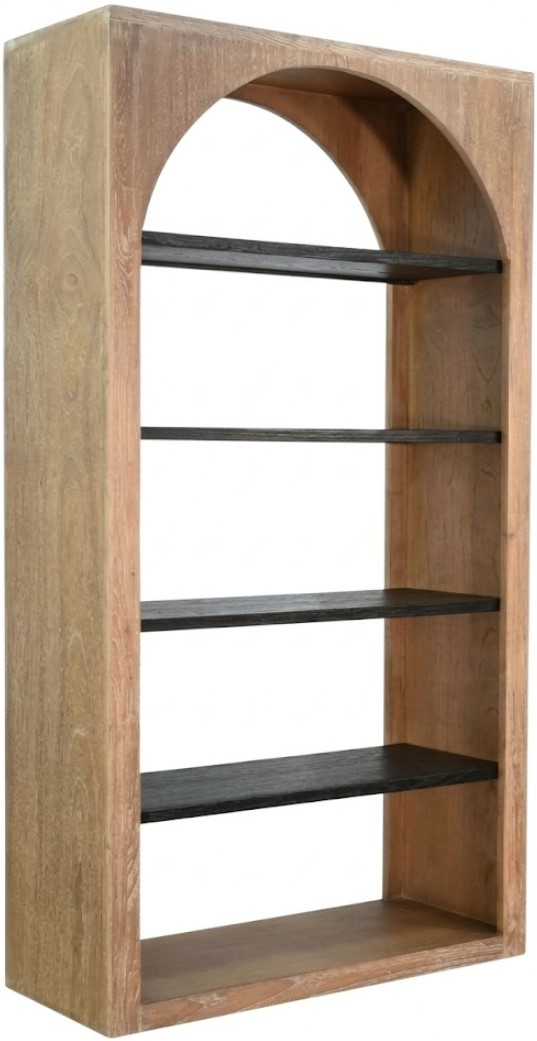 Crafted from wire-brushed Mindi solids and veneers, the 84" Tall Bookcase showcases a refined two-tone finish. Its contemporary design is accented by a distinctive inner arch opening, creating a bold yet elegant look. Made in Indonesia, this piece offers both style and practicality for any space.Read More